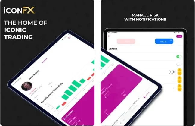 With the Icon FX app, traders can auto-copy expert traders, execute trades from hundreds of global markets 24hrs a day, and see trader performance easily. Furthermore, with their broker being highly regulated, the Icon FX app becomes one for low-risk trading that can help out beginners.